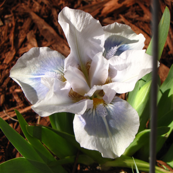 DESCRIPTION: S. white tinted turquoise; blue white styles; F. white tinted turquoise, deep turquoise spot; white beard tipped light blue; slight sweet fragrance.