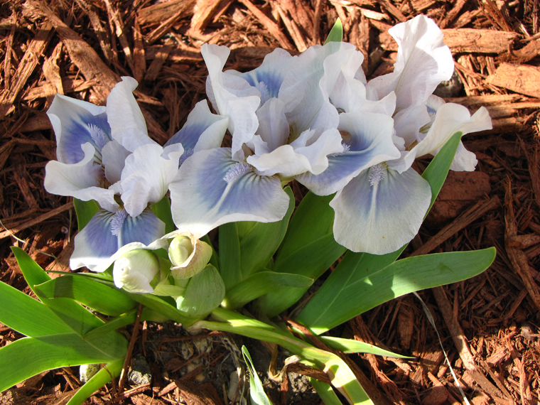INTERESTING INFO: From the 1989 Mid-America Garden Catalog: I had decided not to introduce this one because the standards were a bit informal, but this cutie decided it would strut its stuff for convention goers who rewarded it with an HC. It bloomed again the first of November. Standards are white tinted turquoise. Falls are wide and the same color as the standards but with a deep, intense turquoise spot. The turquoise spot of Indian Jewel has always fascinated me and this is the 3rd generation of work to get that spot on a quality flower.