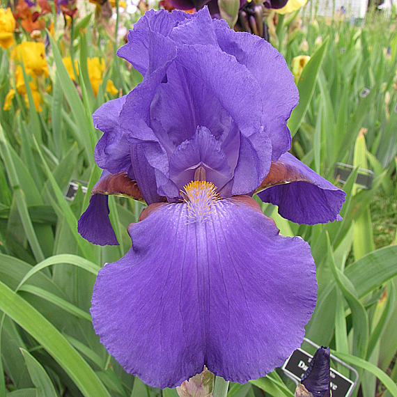 DESCRIPTION: Marine blue self, lighter around beards, maroon-plum hafts; marine blue beards, tipped yellow.