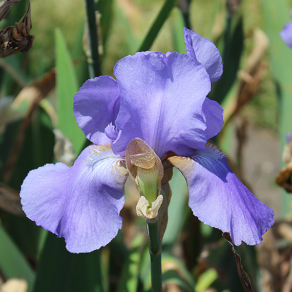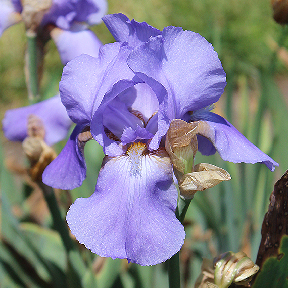 INTERSTING INFO: From the 1947 Schreiner's Iris Lover's Catalog: A lovely harmony of color and style. This rich mid-blue arising from the cross of Anitra and Narain combines the splendid breeding of these two distinct families of blues most effectively. We enjoy a number of good blue iris but relatively few distinct new shades have been added in this class in several years. Danube Wave is very much a self, a rich shade of marine blue, remarkably blue. Its outstanding quality is its depth of coloring. Very thrify with exceptionally well substanced and poised bloom. It is an iris the fancier seeking a 'color note' will prize. Tall stems, well branched.
